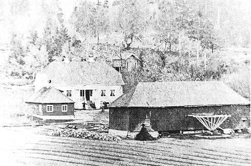 Lensmannsgården på Berg, med alderdommelig hestevandring. Fot. ca. 1870.